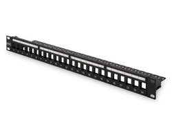 - DIGITUS Modulares Patch Panel, geschirmt 24-port, Blank, 1HE, Rack Mount, Farbe Schwarz transparente Logofelder