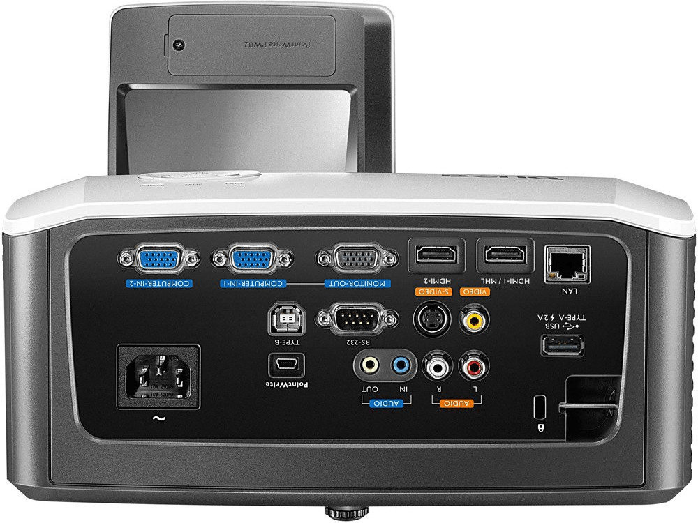 - Anschlüsse: VGA-Eingang (D-Sub) 2x, VGA-Ausgang (D-Sub), Composite Video Eingang (Cinch), S-Video, HDMI, MHL, Mini Jack Ausgang, Mini Jack Eingang, USB Typ A, USB Typ B (Maussteuerung), RS232C