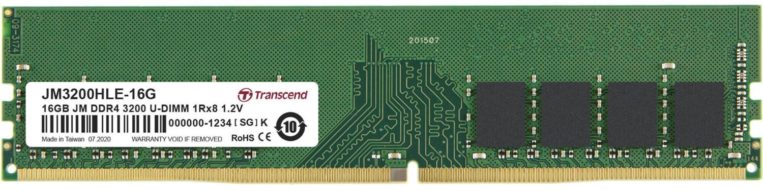 Transcend JetRam 16GB UDIMM DDR4-3200 CL22 1RX8 - JM3200HLE-16G