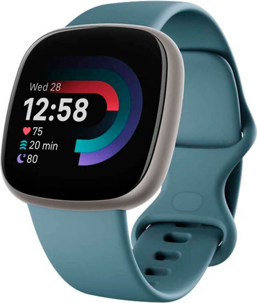 Fitbit Versa 4 Aktivitäts-Tracker wasserfallblau/aluminium-platin