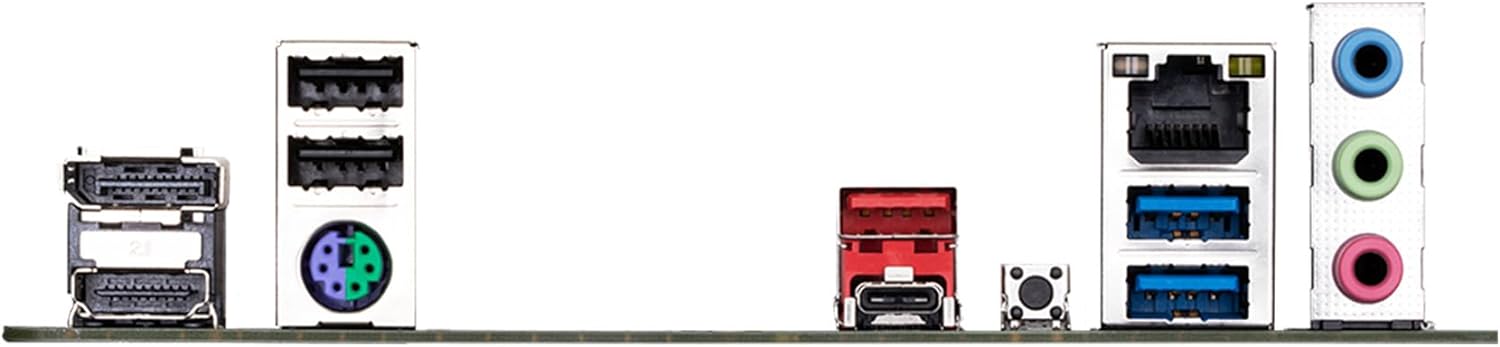 • Peripherie-Anschlüsse: 1 x PS/2, 2 x USB2.0, 3 x USB3.2 Gen1, 1 x USB3.2 Gen2