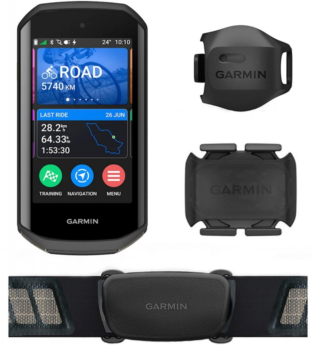 - Lieferumfang: Kabel, Brustgurt, Trittfrequenzsensor, Geschwindigkeitssensor, Halterung