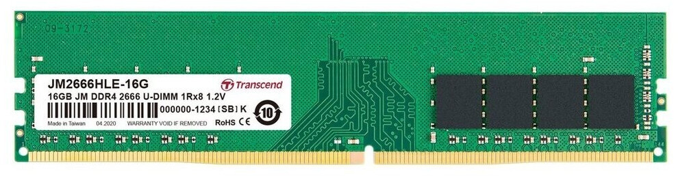 Transcend JetRam 16GB UDIMM DDR4-2666 CL19-19-19 1RX8 - JM2666HLE-16G