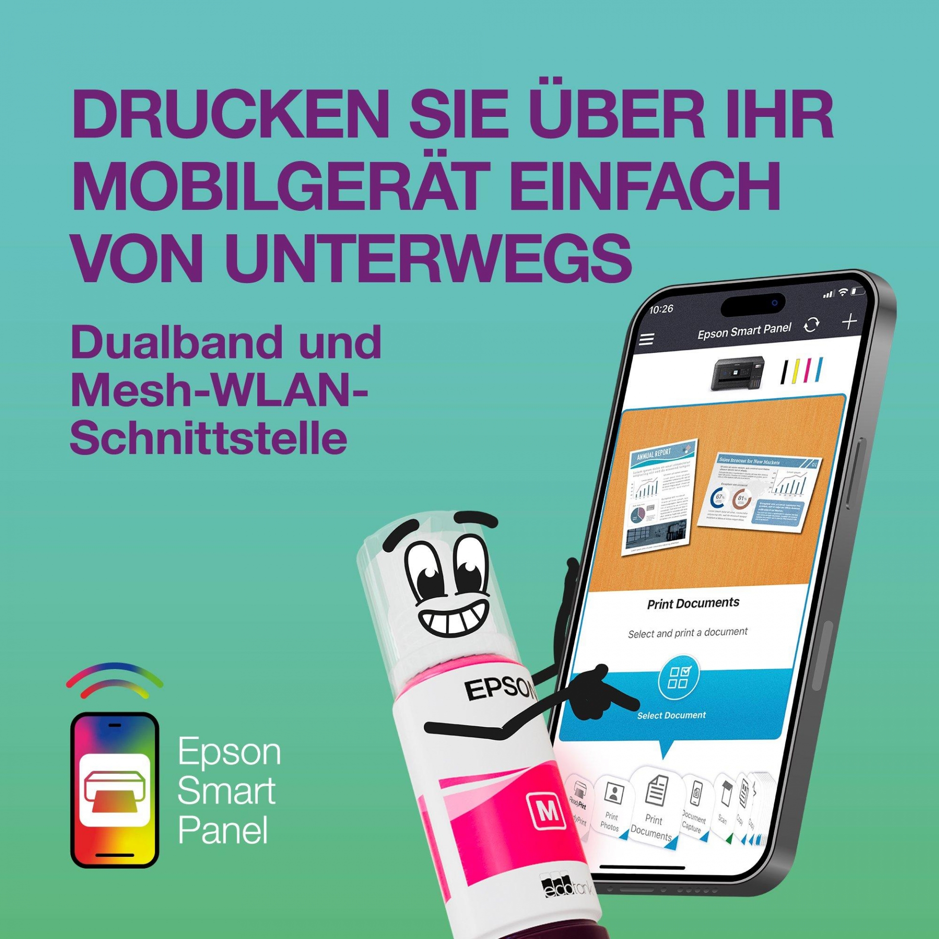 - Mobile Drucktechnologien: Apple AirPrint, Epson Connect, Epson Smart Panel