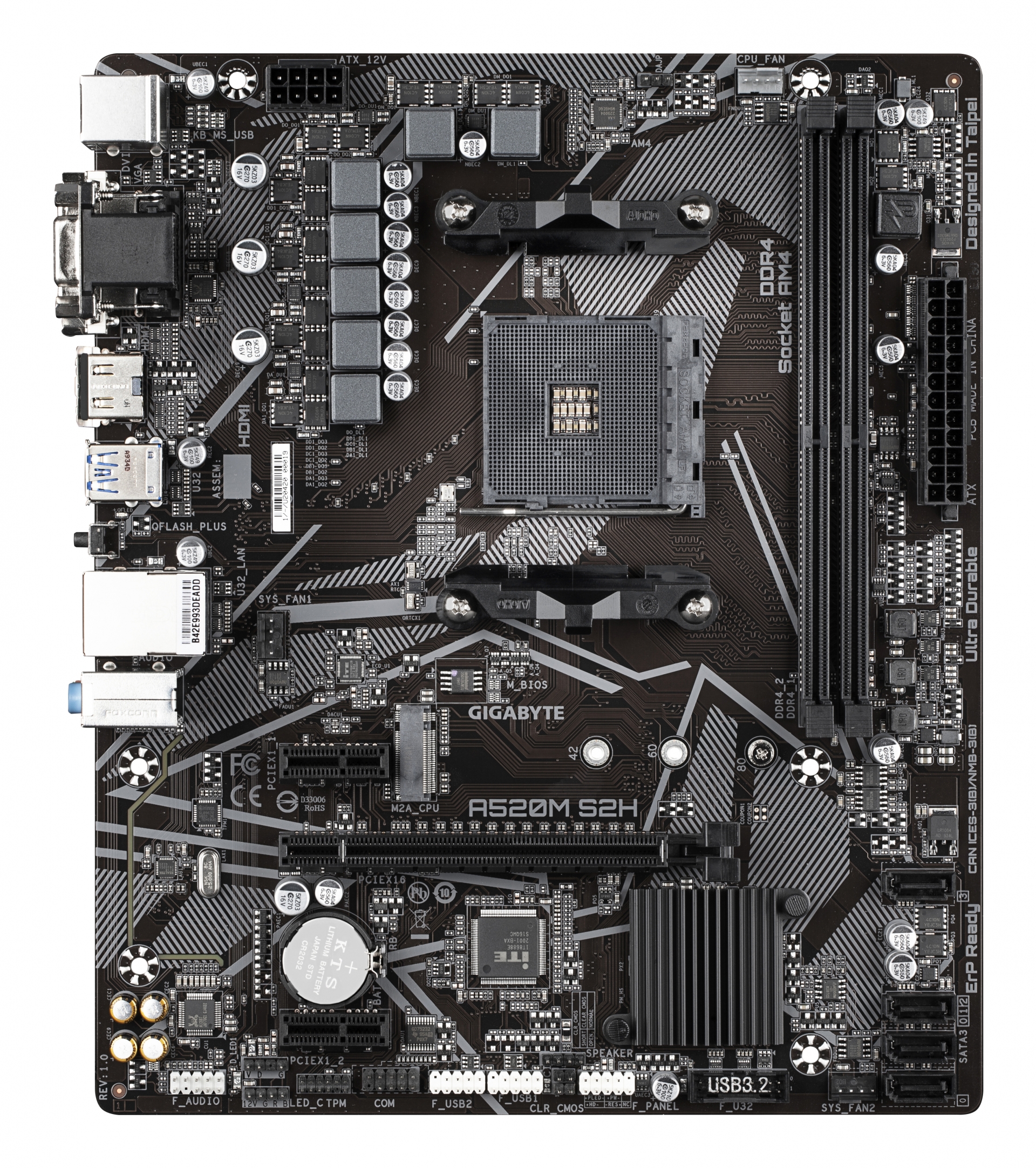 - Peripherie-Anschlüsse: 1 x PS/2, 4 x USB3.2 Gen1, 2 x USB2.0