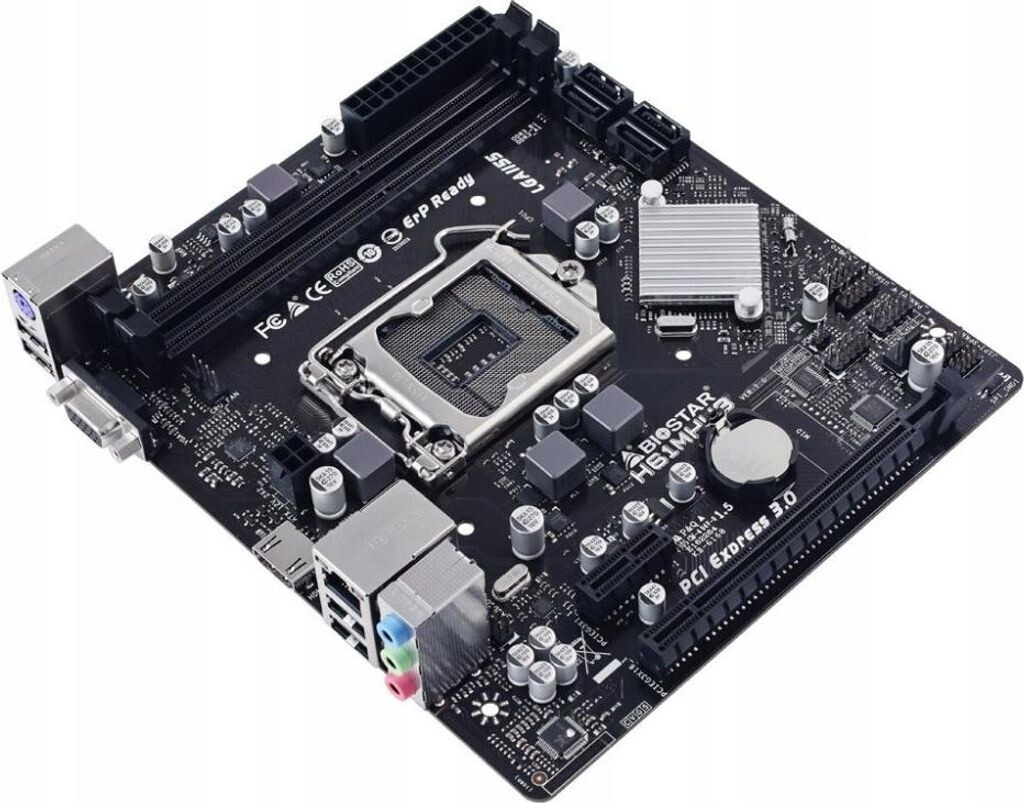 - Anschlüsse intern (Port I/O): 4 x USB2.0, 1 x Gehäuselüfter (4-pin), 1 x Prozessorkühler (4-pin), 1 x Front Panel Audio Header, 1 x COM/Ser